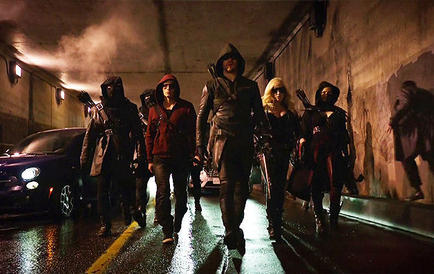 C'est probablement l'une des meilleures scènes de la série. Arrow, Sara, Roy et la Ligue des Assassins pour combattre contre l'armée super puissante de Slade. Le final nous offre un magnifique plan de l'équipe d'Arrow, avec un Roy masqué pour la première fois.